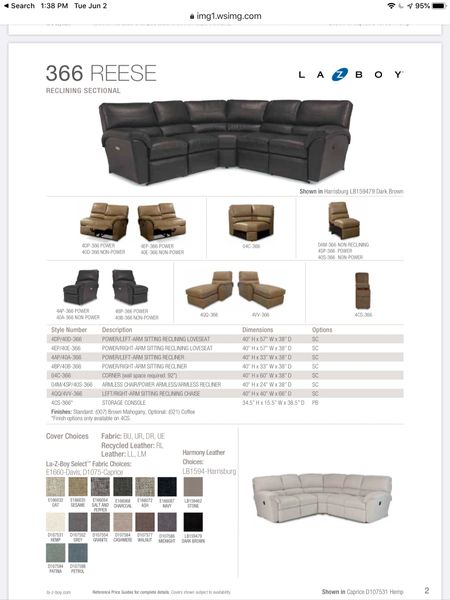 La z boy reese 4 piece reclining sectional in cashmere.