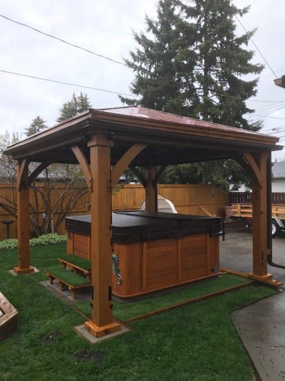 Combining outbuildings with luxurious accessories such as hot tubs adds elegant style to your outdoor patio gazebo yard and garden.